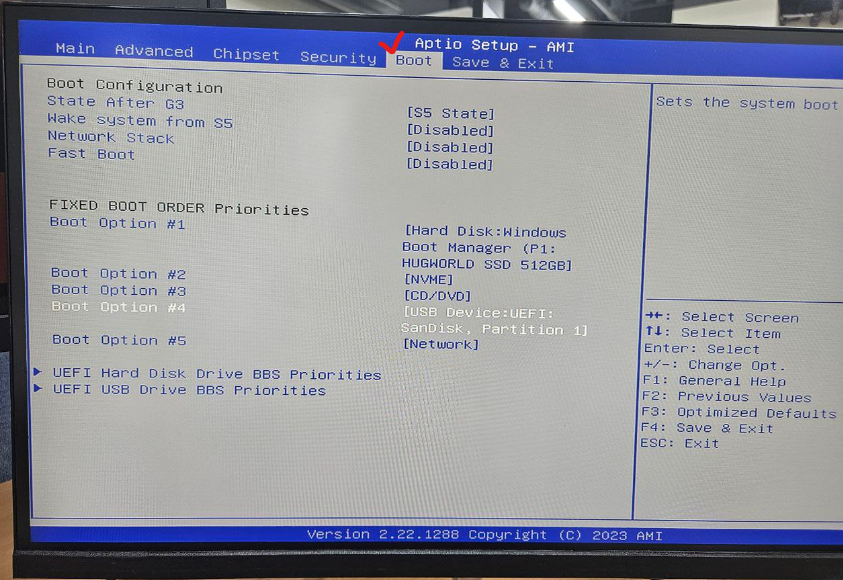 현재 Boot Order Priorities에 USB가 #4로 설정된 것을 확인할 수 있습니다.
