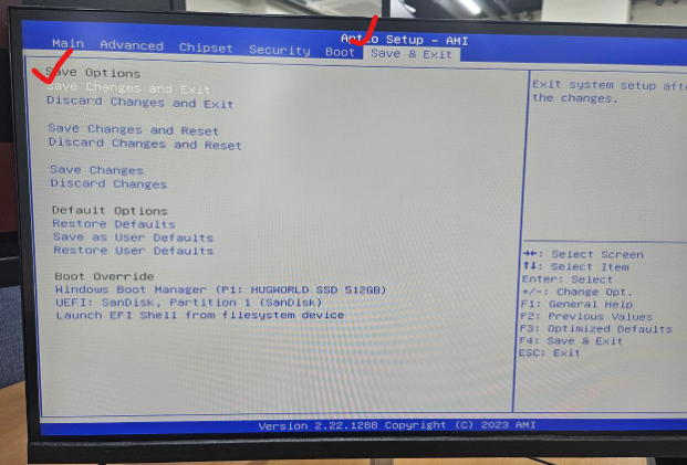 Save & Exit 메뉴로가 저장 및 종료해 주세요