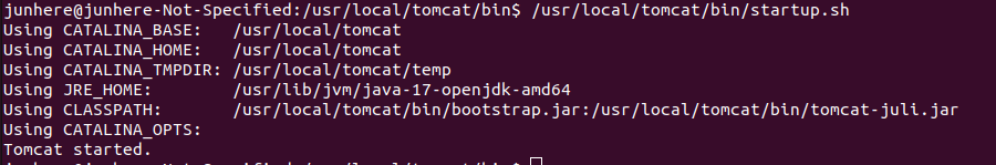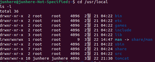 /usr/local 경로에 정상적으로 이동되어 tomcat이라는 이름으로 변경됐는지 확인해 봅시다.