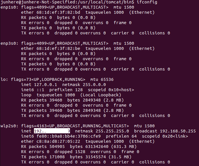 ( 만약 설치가 안돼 있다면 sudo apt install net-tools 해주세요 )