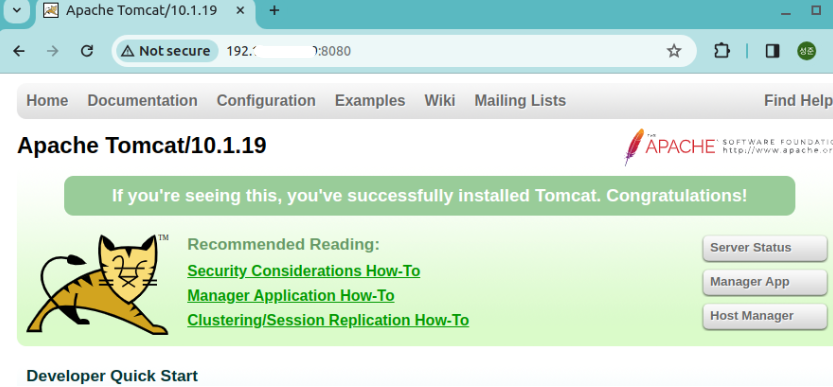 브라우저에 [나의 IP]:8080을 입력해 봅니다