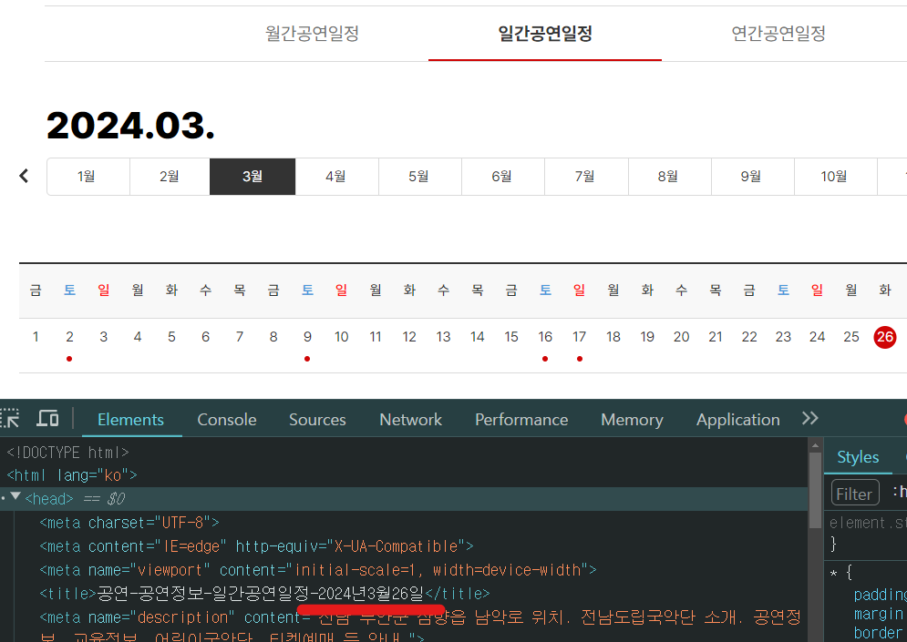 예를 들어 "월간 공연 일정"과 "지난 공연 리스트"와 같은 제목은 span태그가 아닌