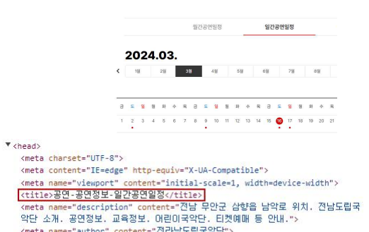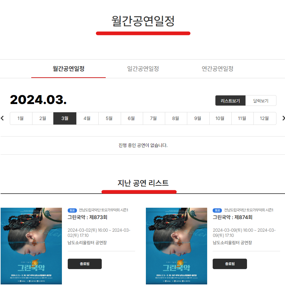 < h > 태그를 해줘야 하며 만약 월간 공연 일정이 <h2> 태그라면 지난 공연 리스트는