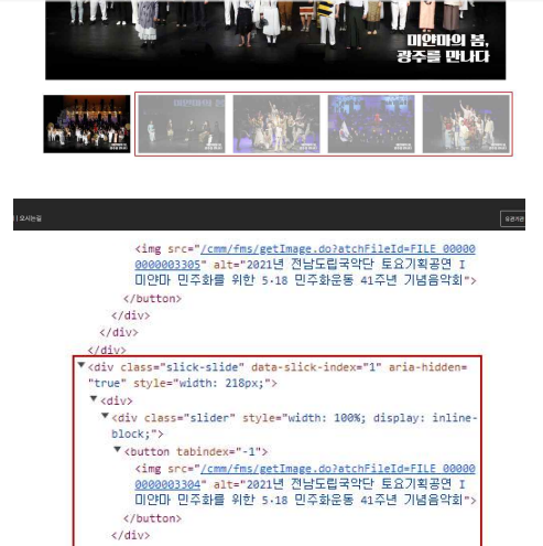 해당 문제는 slick slider의 accessibility 속성에 true 값을 줘 해결했지만
