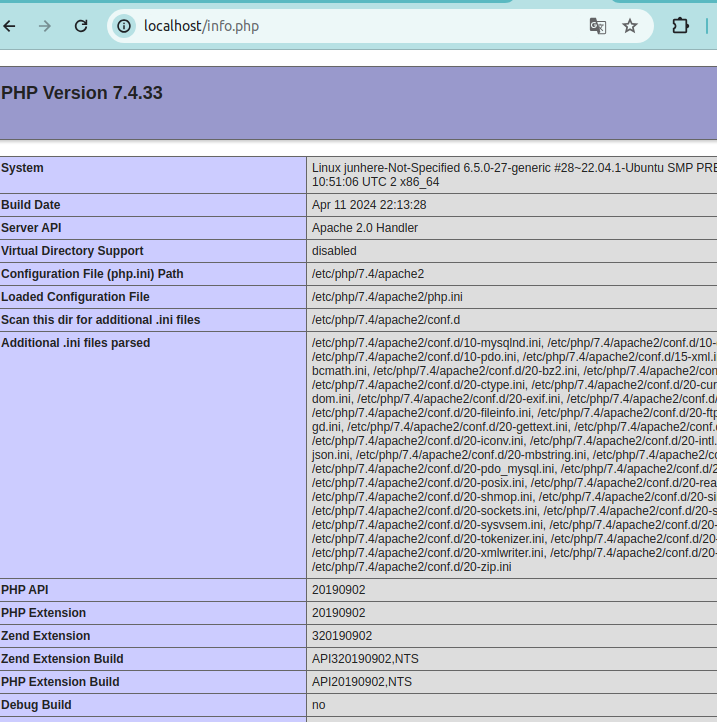 예를 들어 " http://localhost/info.php " 를 검색해 다음과 같은 창이 나타나면 성공입니다.