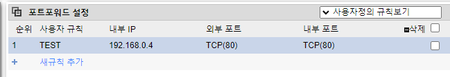 내부 포트 : 외부에서 접속하고자 하는 기기의 포트번호를 입력합니다.