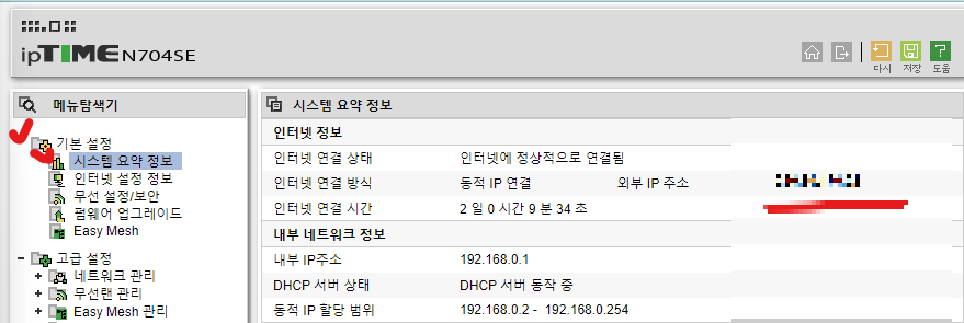 만약 위 주소로 들어가지지 않는다면 게이트웨이 ip로 들어가면 되는데