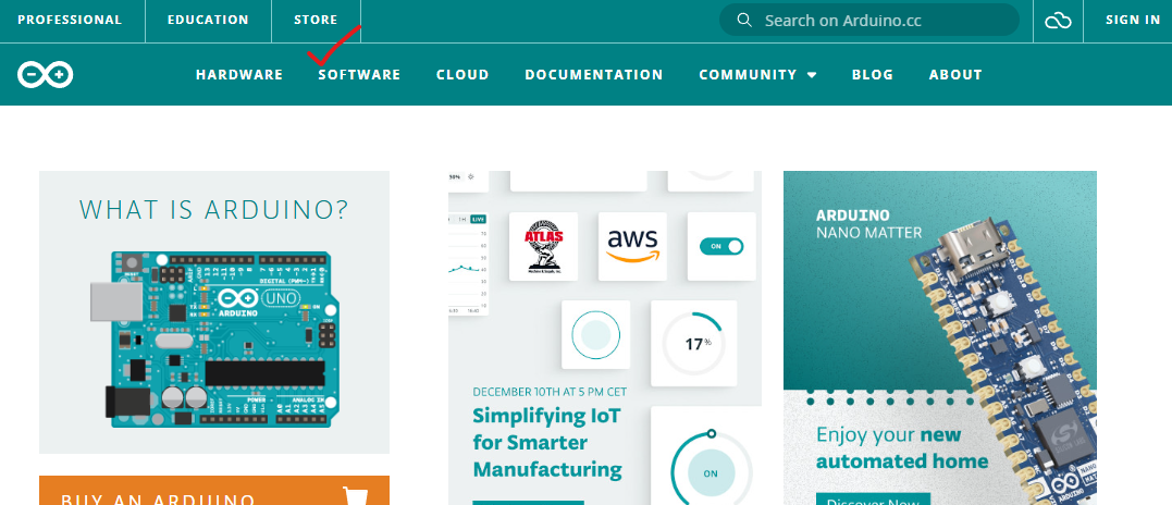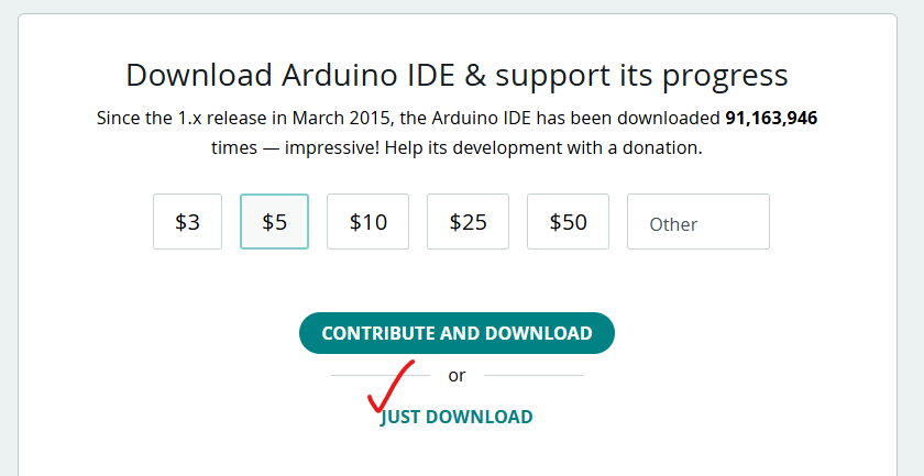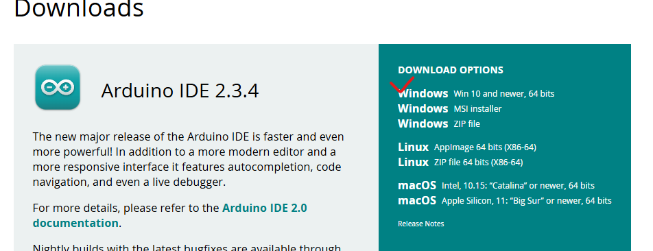 책을 참고하며 아두이노 개발 환경을 구축하기 위해 공식 웹사이트에서 Arduino IDE를 다운로드했습니다.