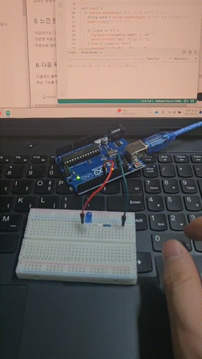 입력한 명령에 따라 LED가 켜지고 꺼지는 모습을 확인할 수 있습니다.
